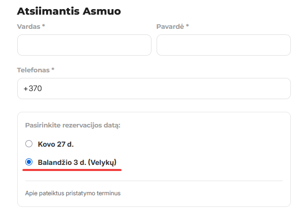 Jei norite būti tikri, kad desertai pasieks Jūsų Velykų stalą laiku, atsiskaitymo metu pasirinkite datą „Balandžio 3 d. (Velykos)“.