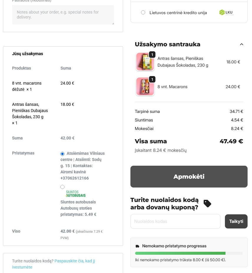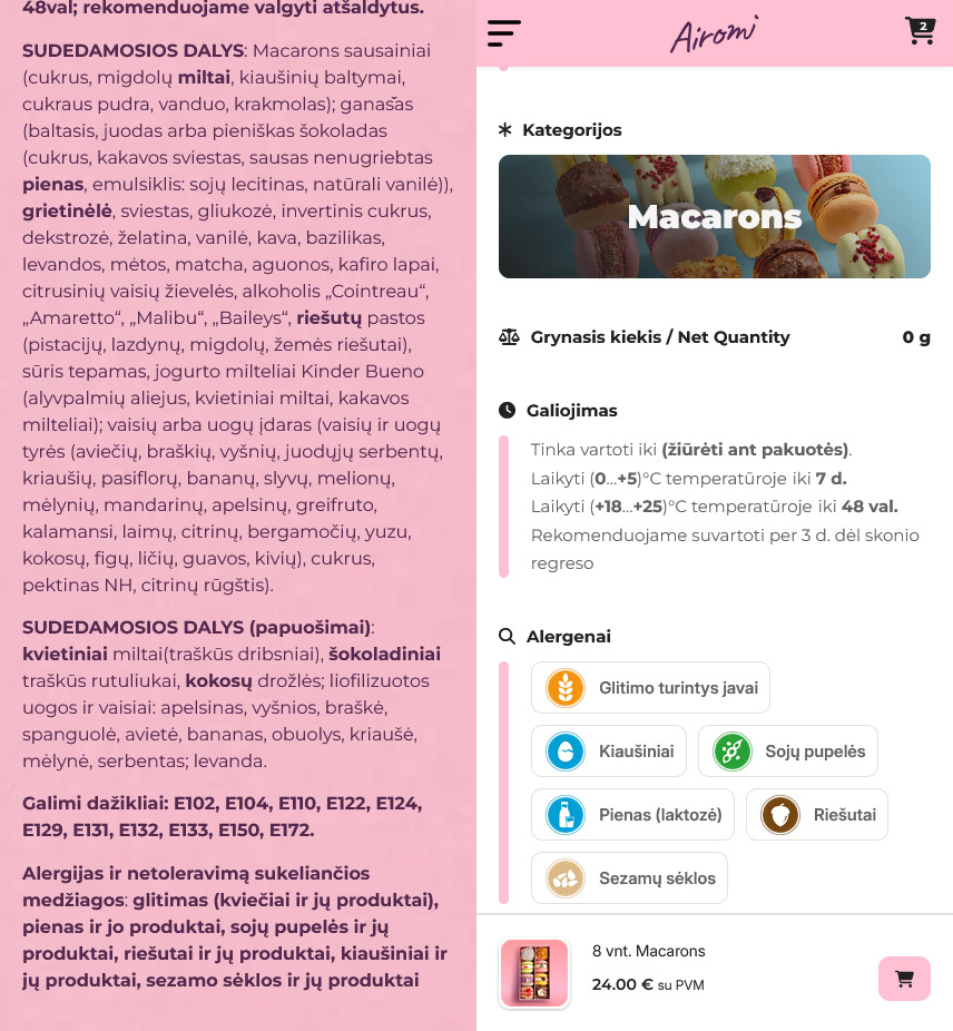 Nuo šiol navigacija tapo gerokai paprastesnė: visas svarbiausias kategorijas, naujienas ir produktus rasite akimirksniu, be jokio ilgo klaidžiojimo. Atsisakėme varginančių teksto blokų ir juos pakeitėme didelėmis, estetiškomis nuotraukomis bei aiškiomis iliustracijomis, kad desertų sudėtį ar pristatymo informaciją matytumėte iškart, o nauja paieškos sistema padės rasti norimą produktą per kelias sekundes. Jūsų krepšelis dabar visada pasiekiamas vienu paspaudimu, jame aiškiai matysite progresą iki nemokamo siuntimo, o pats atsiskaitymo procesas tapo maksimaliai trumpas ir kuo mažiau varginantis. Atsiskaityme taip pat pridėjome užsakymo suvestinę prieš pat mokėjimo mygtuką, kad galėtumėte pasitikrinti ar užsakymas tikrai toks, kokio norite. Kiekviena detalė, nuo patogesnių filtrų iki alergenų ar mūsų fizinių vietų yra kiekvieno iš Jūsų užklausą, į kurią sureagavome ir patobulinome tai ką darome. Ačiū!