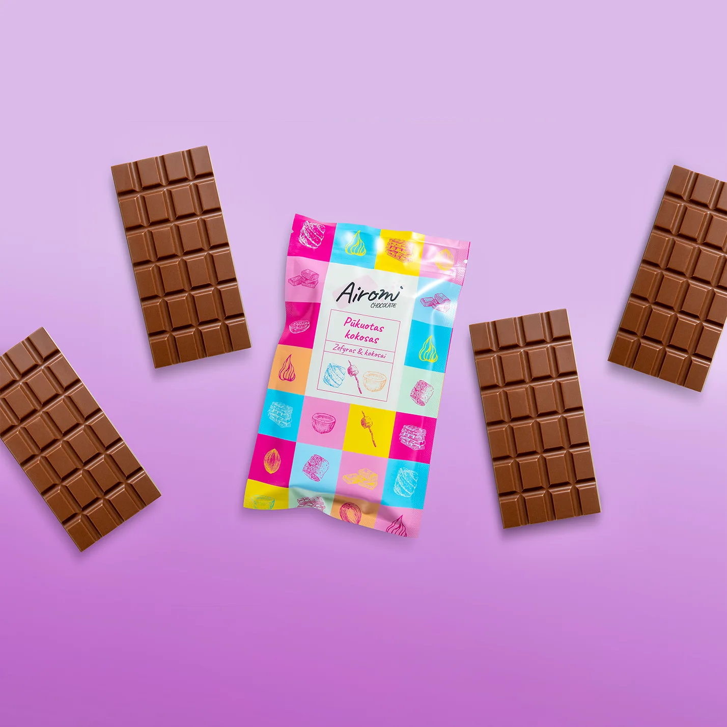 Pieniškas Dubajaus šokoladas su kokosų drožlėmis. Pristatome visoje Lietuvoje per paštomatus.